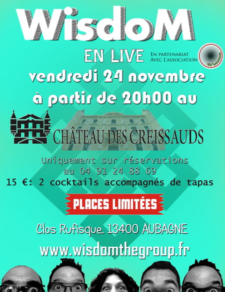 Do you know what's Castle Bar Factory ? C'est simple ! Retrouvez-vous entre amis ou en amoureux, pour ce live de WisdoM orchestré par les élèves de L'ECOLE HOTELIERE DE PROVENCE autour d’ardoises (bouchées et canapés salés puis sucrés) et quelques cocktails (avec ou sans alcool). 15€ les 2 Cocktails. Comment dire...... c'est exceptionnel !!! Attention, places limitées, réservation obligatoire au 04 91 24 88 69. Viiiiiiiiiiiiiiiiiteeeeee....!!!!!
