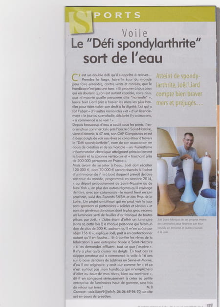 car mois joel liard j'ai une spondylarthrite et je pratique la voile et je navigue sur un catamaran de sport " you tube joel liard" et aujourd’hui pour monté a bien j'ai besoin de vous en vous remercient "pour tous don adresse a l’ordre de l’association défi spondylarthrite 34 rue julie daubié 44600 saint-nazaire