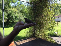Les seuls oiseaux que je m'autorise, sont ceux de la nature et en liberté. Ici 1 oiseau recueilli après 1 choc avec 1 vitre : plus de peur que de mal.