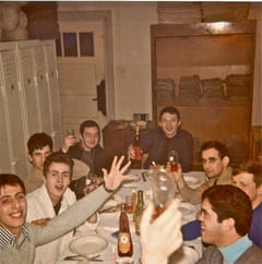 Petite fête à l'infirmerie de garnison où j'étais infirmier (blouse blanche car de garde ce jour-là)