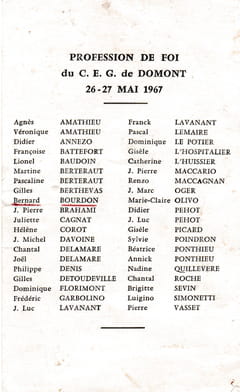 1966 1967 Sixième 4 une Très bonne année scolaire, ma première année mixte aussi ... 1967 1968 Cinquième 3 >> Mai 68 un mois de vacances forcée 1968 1969 Quatrième 3 1968 1970 Troisième 3 le BEPC un prof de physique chimie inoubliable ....