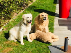 En retraite..une fille, Deux petits enfants...Deux Goldens...