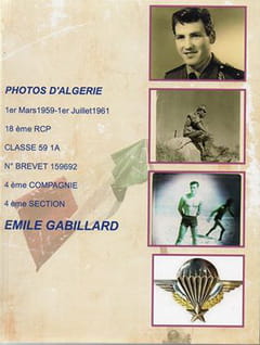 Appelé le 1 03 1959, j'ai fait mes classes au 18eme RCP, 4ème compagnie (carmin ), au camp du Hameau, puis je suis parti en Algérie en Oct 59, pour rejoindre la base arrière de Batna, je suis resté 19mois. en Algérie j'étais sous les ordres du Capitaine Génin.