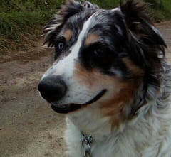 Chrystale ( berger australien bleu merle , 12 ans ) -