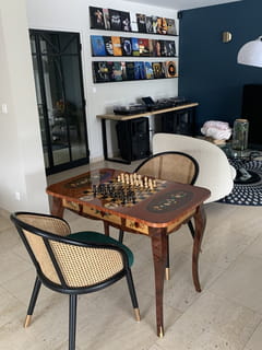 Gilles DRUAIS Marqueterie, table de jeux échecs et dame