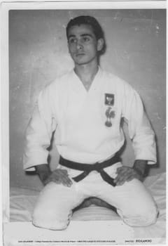 Jacky JALABERT J' ai commencé à pratiquer le Judo sous la directive de mon père qui pratiquait et enseignait (en plus de son travail) le Jiu Jitsu aux policiers du commissariat central d' Alger. J' ai été sélectionné comme capitaine d' équipe dans mon club des Groupes Laïques d'Etudes d'Alger (GLEA) qui resta invaincue durant cinq années et accédant au Championnat de France au stade Pierre de Coubertin à Paris en 1961, d'où nous sommes repartis vainqueurs....j' avais 18 ans et promu instituteur de l' éducation nationale, sorti major de ma promotion de l' école normale d'instituteurs de Ben Aknoun (ALGER). J' ai été sélectionné dans l' équipe de France. J' ai obtenu mon 4 ème DAN de judo en 1967, et en 68 le 3 ème DAN de Karaté, et le 3 ème DAN d' Aïkido....J' ai laissé, le 17 juin 1962, dans ma chambre à Alger plus de 38 Coupes et une cinquantaine de médailles....Je n' ai pu conserver que ma médaille de champion de France car je l' avais autour du cou durant mon exode Alger/Paris en juin 62.