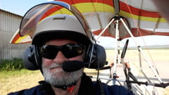 Jean-Claude COLLOMBAT Le mardi matin 10/07/2018, je viens d'effectuer mon premier vol en solo sur ma machine. Je suis lâché !