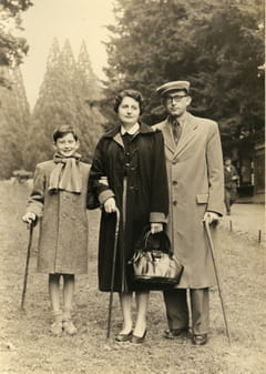 Mes parents et moi, à gauche, en cure à La Bourboule (Parc Fenestre, avec les sequoias en arrière-plan)