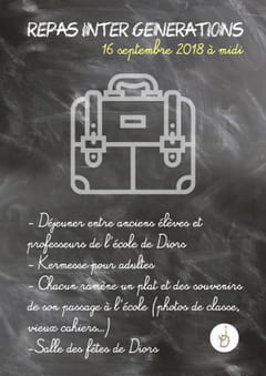 Si vous êtes ancien élève ou professeur de l'école de Diors, nous vous attendons le 16 septembre à la salle des fêtes, à partir de 12h, pour partager nos souvenirs autour d'un repas. Contactez moi si vous êtes intéressés.
