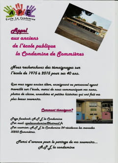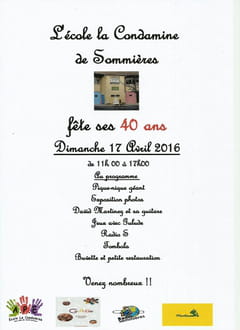 - Sommieresdimanche 17 avril 2016 aura lieu les 40 ans de l'école la Condamine de Sommières. soit 1975 à 2015.
