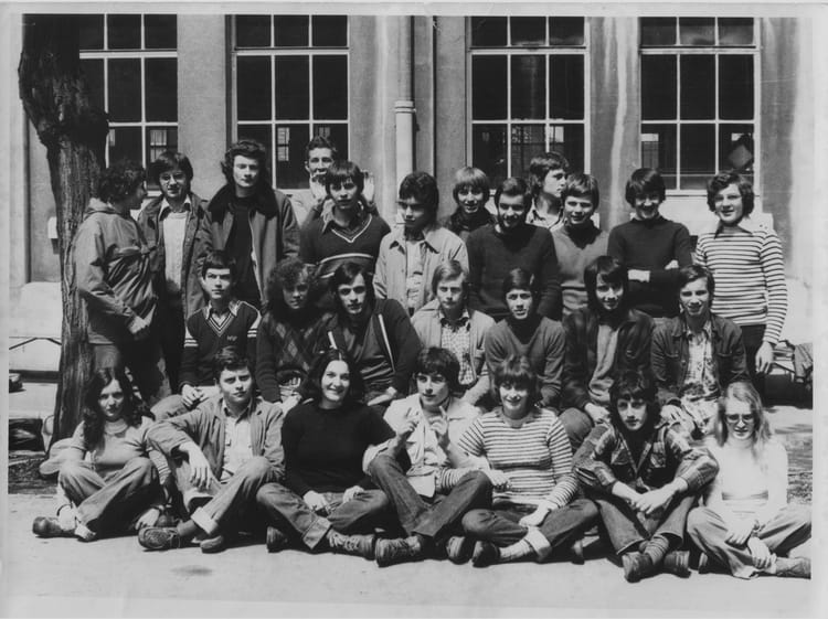 Naviguez en cliquant sur la photo. 1977 - 1 E2 - Lycée jules haag 1ière E 76/77 Sur la photo Patrick ROUGEOT Philippe DIAZ Signaler un abus