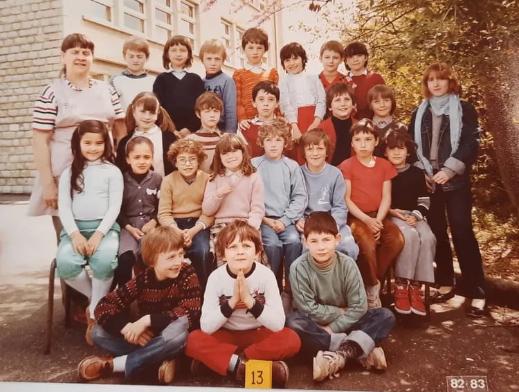 Denise PRUGNOTSur cette photo je reconnais: Antony Dupont (en bas à gauche), Isabelle Do (juste au dessus du garçon qui fait une prière), Je crois reconnaitre Séverine Legros (en haut à droite), la maîtresse: MMe Qune (je ne connais pas l'orthographe, l'adulte à gauche), et moi-même Denise Prugnot (juste sous la maîtresse)