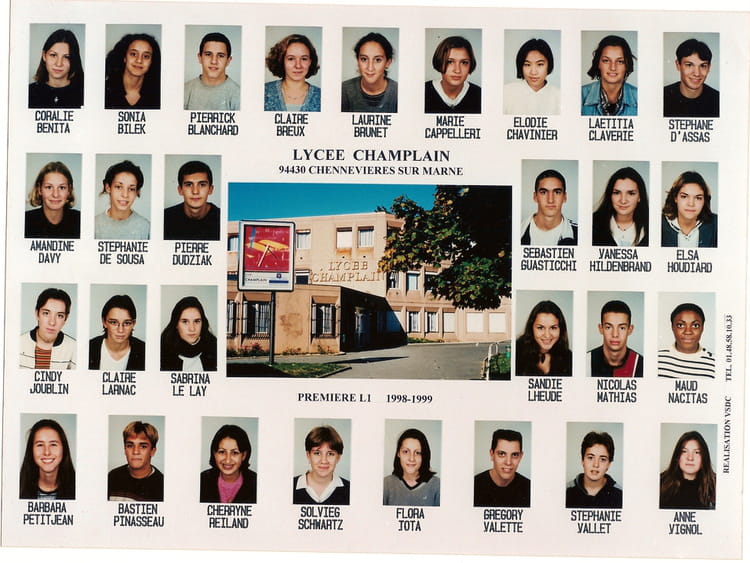 Naviguez en cliquant sur la photo. 1999 - 1ère L1 - Lycée champlain Sur la photo Aucune personne identifiée. Signaler un abus