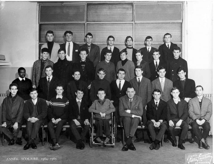 J'étais dans l'autre 1ére (1M'1) et je reconnais au 2ème rang 4ème à partir de la gauche Jean-Louis BILLON; 3ème rang 3ème à partir de la gauche Michel DUSSARAT et sur son fauteuil Pierre VERSCHOERE qui décédera quelques mois après cette photos.