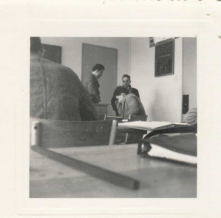 Naviguez en cliquant sur la photo. 1962 - 2 E - Lycée professionnel washington à gauche le prof d'électro-technique Mr Ridgi ; avec ses lunettes le prof d'atelier surnommé "topo" ; l'élève assis qui baisse la tête en se marrant est Gérard Martineau, nous sommes encore ami à ce jour (08/2012) Sur la photo Aucune personne identifiée. Signaler un abus