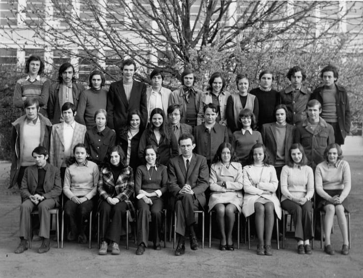 Naviguez en cliquant sur la photo. 1971 - 2eme c - Lycée condorcet Je suis le premier du 2eme rang en partant de la droite Sur la photo Andrée GRYGIEL (DUPUIS) Richard WAWER Signaler un abus