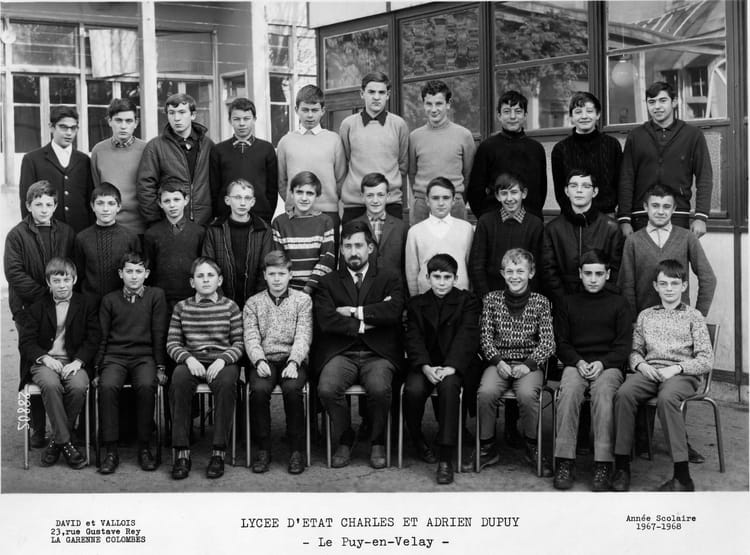 Naviguez en cliquant sur la photo. 1967 - 3 ème A - Lycée c et a dupuy Sur la photo Christian COURET Gilbert AINOUX Jean Francois ARNOULD Jean-Louis RAFFIER Jean-Luc LAVASTRE Michel ROME Paul ROUVIÈRE Signaler un abus