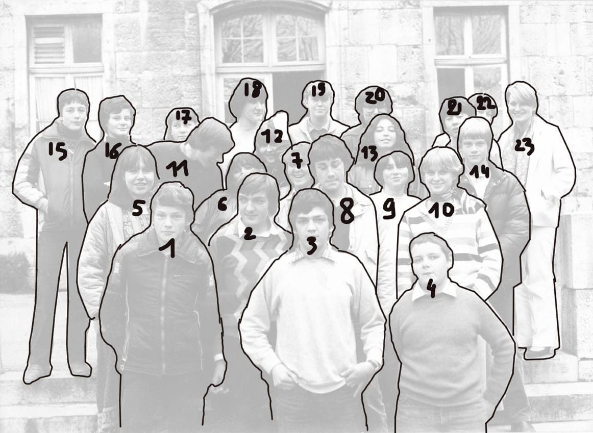 Naviguez en cliquant sur la photo. 1980 - 3e 7 - Collège victor hugo centre Sur la photo Aline Pellet Catherine SCHNEIDER Danier Cotte Denis MALFROY Éric Macherey Érik Pagnot Faïza Brahmi Frédéric Bulle Frédéric Duquet Fred NEIDHARDT Jean-Étienne Duquet Jean-Jacques Vuillame Marie-Luce SAILLARD Nadine Revillard Pascale Le Mignon Pascal Maître Viviane Gresset Yves Brzustowski Signaler un abus