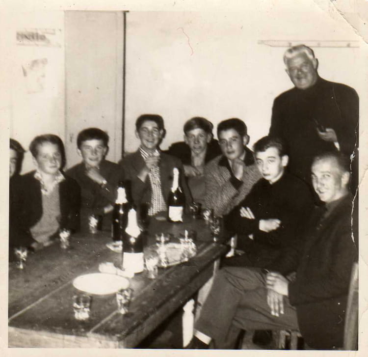 Naviguez en cliquant sur la photo. 1964 - 3ème - C e g Nous arrosons le brevet des collèges avec l'Abbé au presbytère de Nortkerque. Je prends la photo donc pas dessus, dommage !!! Sur la photo Aucune personne identifiée. Signaler un abus