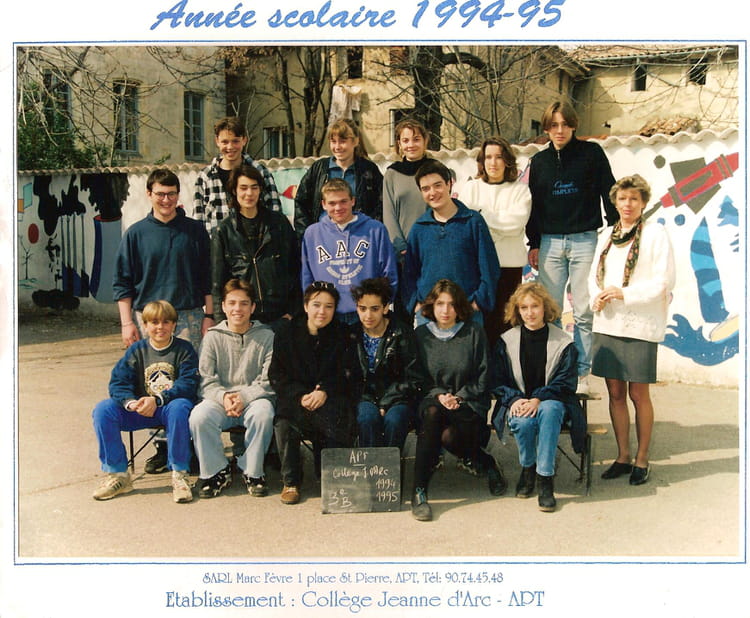 Naviguez en cliquant sur la photo. 1994 - 3èmeB - Collège jeanne d'arc Sur la photo Aucune personne identifiée. Signaler un abus