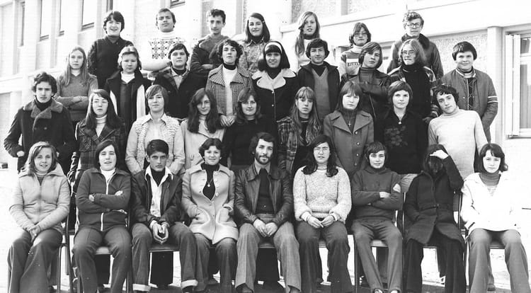 Naviguez en cliquant sur la photo. 1976 - 3èmeB4_1976-1977 - Collège betance Sur la photo Catherine LABATUT Florence BARSACQ (MOGE) Jean-Pierre-Pilou CASTEX Veronique PAVIE (MARIVOET ) Signaler un abus