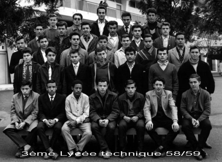 Naviguez en cliquant sur la photo. 1958 - 3i - Lycée technique 1er rang:1=Brhul? 4= Guérini? 2 ème rang: 1=Gérin, 2= Choukroun? 4ème rang: 6= Génua ou Genova? 5ème rang: 1= Dodet, 2= Costa? Sur la photo Gilbert DODET Jean Manuel MURCIA Raphael VALLECILLO Signaler un abus