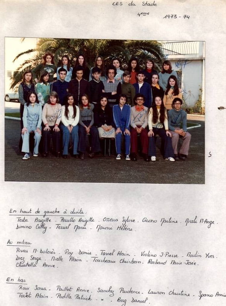 Naviguez en cliquant sur la photo. 1973 - 4A - Le stade Ces Le Stade 4 A 1973-74 Sur la photo Christine VOGEL LAURON Dominique RATOUIS (ROY) Signaler un abus