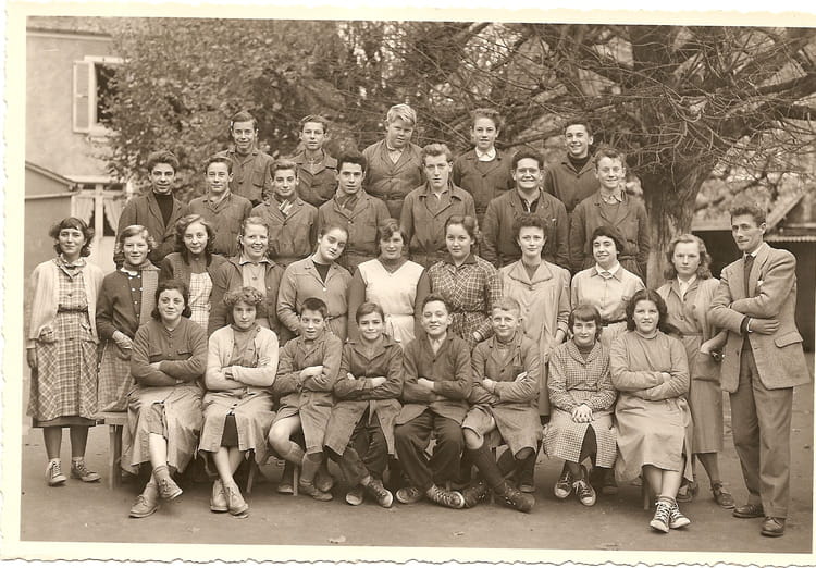 Jean Paul MEUNIERChristiane DEBAUCHERON 2ème à droite au premier rang en regardant la photo, née en 1942 entrée en 6 ème en 1953 pense que cette classe est la 4 éme 1955 - 1956