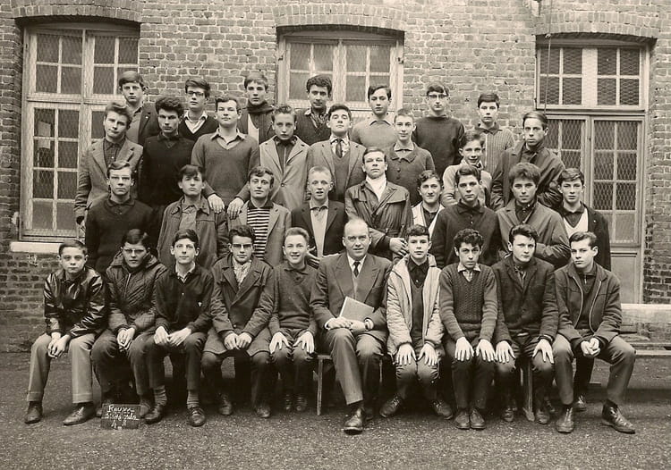 Naviguez en cliquant sur la photo. 1963 - 4ème 2 - Gericault en partant du haut à gauche Fimbel Vincent, Lefbevre Jean-Paul, Bréant François, Chatel , Lhommet, Morlet Didier, Zaranski, Soudan , Pringot , Depitre Jean-Louis, Mare , Huck Jean-Jacques, Bayeux Francois, Moncel Gérard, Mallet , Ehousant ,Crobar Cécil, Chantepie Bernard, Goudin ?, Chauviré Maurice, Belz Daniel, Cocagne , Godet , Guéroux , Marais , Lefbevre Jacques Sur la photo Aucune personne identifiée. Signaler un abus