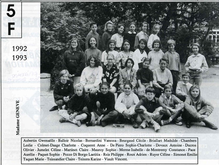 Naviguez en cliquant sur la photo. 1992 - 5eF (1992) - Collège notre-dame J'ai redoublé... Après, j'ai été "mutée" dans le ch'Nord... Sur la photo Aurélie PACE Sophie-Charlotte DE PIERO Vanessa BERNARDINI Signaler un abus