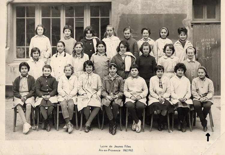 Francoise ROME (FRANCOISE ROME)Françoise Rome, ligne du haut , quatrième position, blouse claire, cheveux noués en deux queues de cheval ,, sur la même ligne, sixième position Aline Dupond décédée adolescente ( assassinée je crois), puis Geneviève Eyme et enfin Noëlle Besombes .