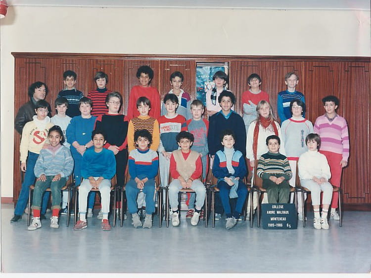 Naviguez en cliquant sur la photo. 1985 - 6e5 - Andre malraux 1er rang: Latifa Noukas, ?,?, Hassan Elmouktafi? Driss,Bechichi,? 2e rang: Moi, Pascal,?,?, Christelle Gaïca, Caroline Hoquet,?, Omar,?,?,? 3e rang: ?,?, Anina Benadji, Franck Collignon, Virginie,?,?. Sur la photo Anne Christine FRIAS GUILLEMET (FRIAS) Signaler un abus