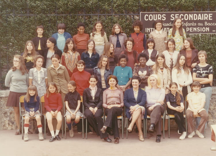 De G à D : Assis: X, X, X, X, und surveillante, Mme. Rubinstein, X, Désirée X et Dominique X, les 2 jumelles. 1er rang debout juste derrière les chaises : X, Véronique Aligé, X, X, Catherine Parachou, Liliane Lopes, Véronique Lopes, X, X, X. 2ème rang : pour moi c'était les grandes, je ne connais pas les noms, dernier rang : X,X, Dominique Guérin, Catherine Gréjon, X, X, Patricia X, X.