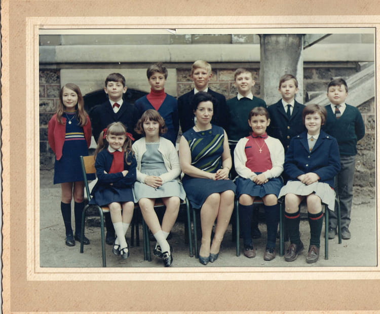 Naviguez en cliquant sur la photo. 1967 - 7e - Cours minerva g à d assis Sylvie Gautier, Martine Verger, Mlle Eon, Veronique Muller, Roselyne De Vezins Debouts Caroline Flornoy, X, Pierre Tardy, Eric Mauroy, Hugues François, Jerôme x,Thierry Waldman Sur la photo Hugues FRANCOIS Hugues FRANCOIS Signaler un abus