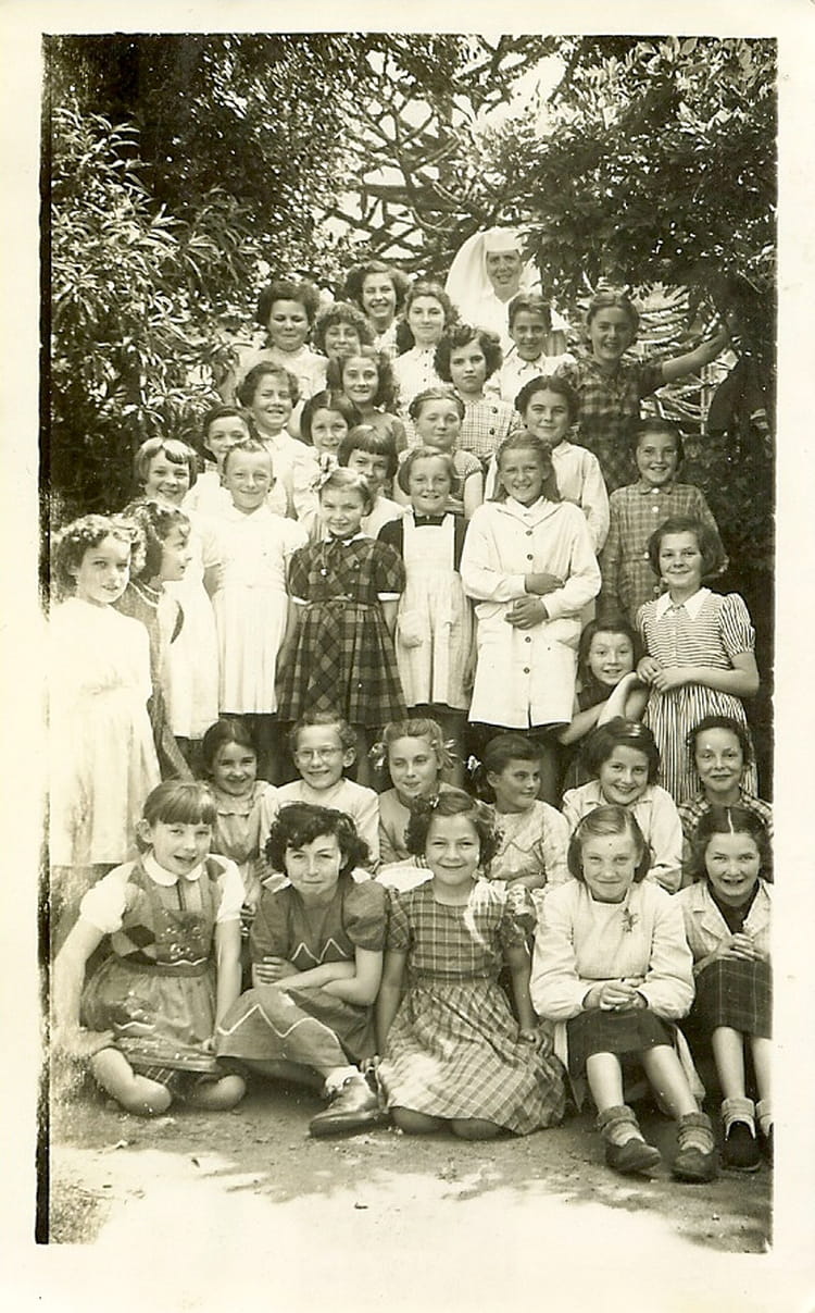 Naviguez en cliquant sur la photo. 1953 - 9e - école immaculée conception classe de sr Thérèse, photo prise dans le jardin en contre bas de la cour Sur la photo Maryvonne BIGOT Maryvonne BIGOT Signaler un abus