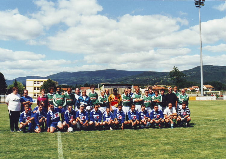 Naviguez en cliquant sur la photo. 1998 - Anciens de l'usa et anciens verts - Ambert u s- fc match de gala anciens de l'usa contre anciens verts Sur la photo J Claude CHANTELOUP Jean Louis CHEVALIER Michel BEAULATON Raymond FRITEYRE Signaler un abus