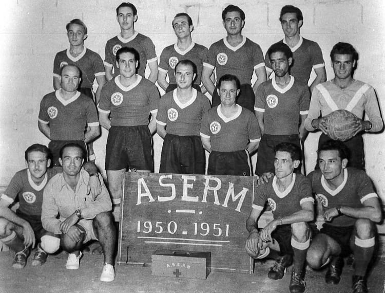 Naviguez en cliquant sur la photo. 1950 - ASERM - Aserm Mon père se trouve en haut 1er rang à droite Georges Poujol si vous l'avait connu ? Sur la photo Ghislaine GHISLAINE LAVAL (LAVAL) Signaler un abus