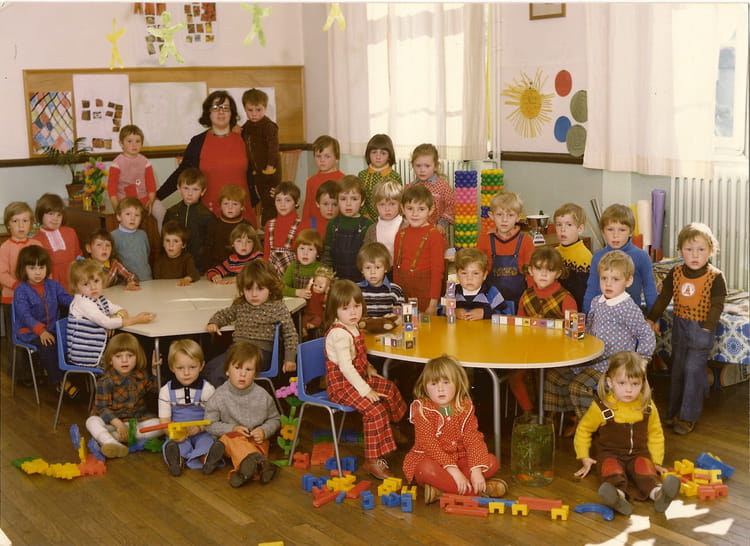 Naviguez en cliquant sur la photo. 1977 - Aspach le bas - Ecole des deux aspach-michelbach (aspach le bas) je suis celle qui a un tablier bleu et rouge,j suis assise Sur la photo Laurence MARCINO (DANGEL) Signaler un abus