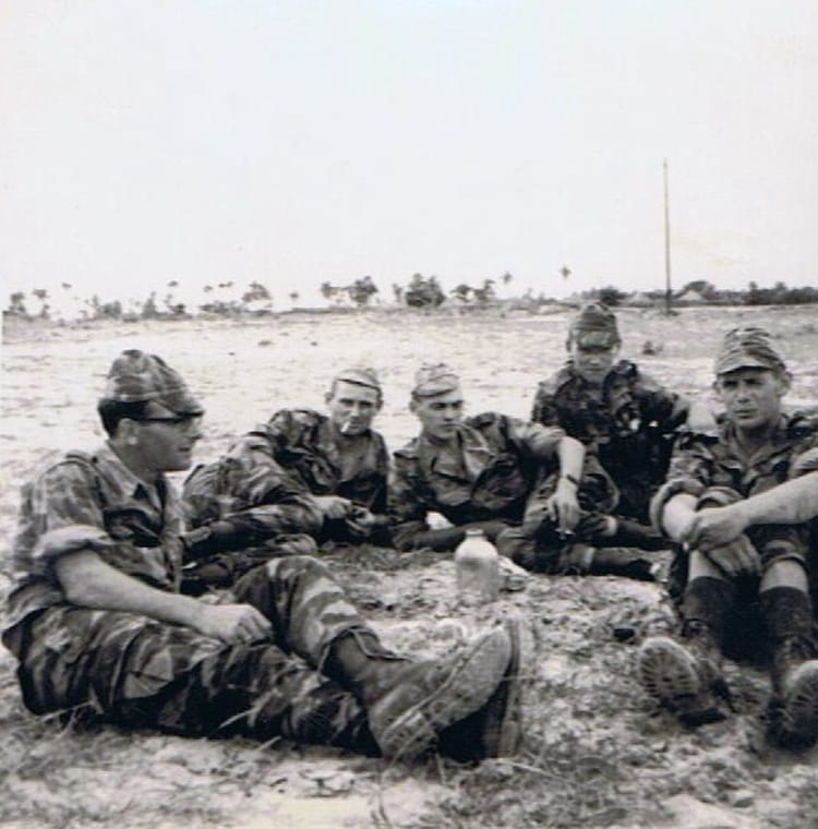 Naviguez en cliquant sur la photo. 1966 - Au repos après les combats de nuit - 1 er r.i.a.o.m Sur la photo André PESTEL Signaler un abus
