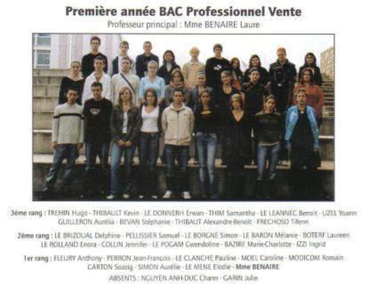 Naviguez en cliquant sur la photo. 2006 - Bac pro vente - Lycée notre-dame de la paix Sur la photo Tifenn FRECHOSO Alexandre Benoit THIBAUT Signaler un abus