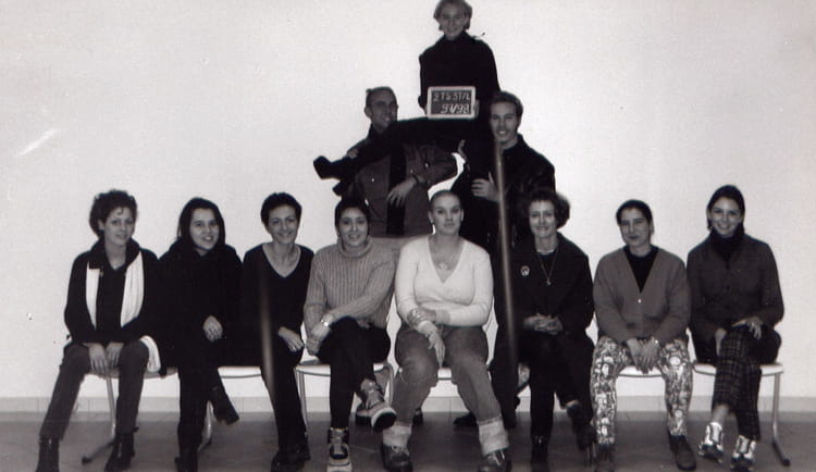 Naviguez en cliquant sur la photo. 1998 - BTS Stylisme de mode - Lycée sévigné avec Mme Pouhaer,Jean mary, Greg, Berangere,Nathalie, Marjo, Vanessa, Gab, Marie sabrine et Marie. Sur la photo David GUENARD Grégory BAMETZ Signaler un abus