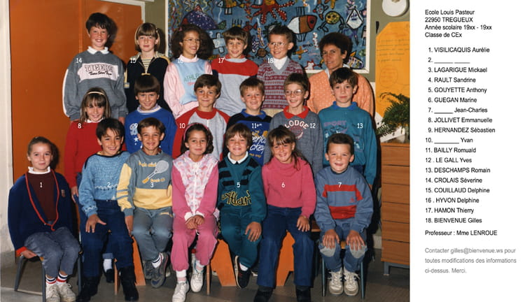 Naviguez en cliquant sur la photo. 1987 - CE? - Ecole rue pasteur Sur la photo Delphine HYVON Aurélie VISILICAQUIS Gilles BIENVENUE Romuald BAILLY Sébastien HERNANDEZ Signaler un abus