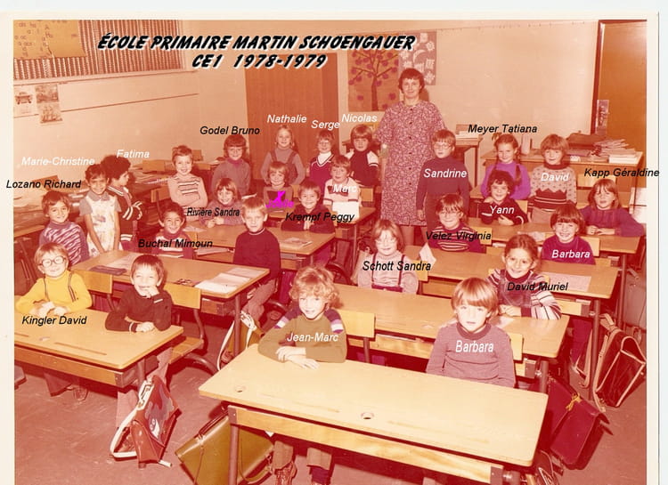 Naviguez en cliquant sur la photo. 1979 - CE1 1978-1979 - Ecole martin schongauer Sur la photo David KLINGLER Jean-Marc ISEL Nathalie SAETTEL (LOEGEL -ESTEVES) Signaler un abus