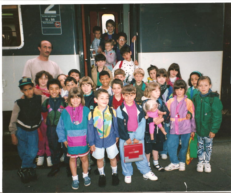 Naviguez en cliquant sur la photo. 1991 - CE1 - Carnot En partance pour l'Auvergne. Sur la photo David MAILLARD Gaëlle ROGER Signaler un abus