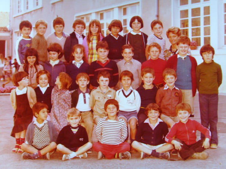 Marilys SOULET (BIOJOUT) l'enfant le plus à droite debout pantalon foncé pull vert est mon cousin Frédéric Fort