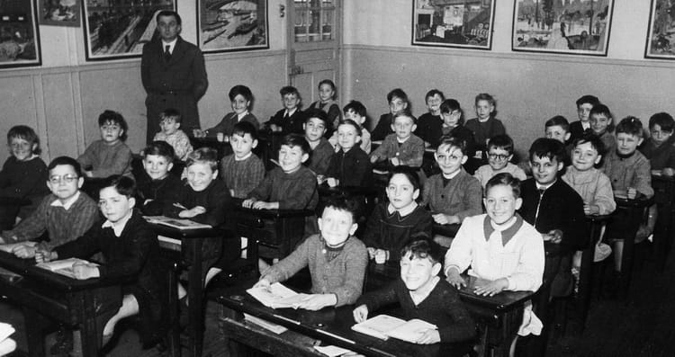 Naviguez en cliquant sur la photo. 1951 - CE1 - Ecole (75020) Je suis au premier plan. Sur la photo Aucune personne identifiée. Signaler un abus