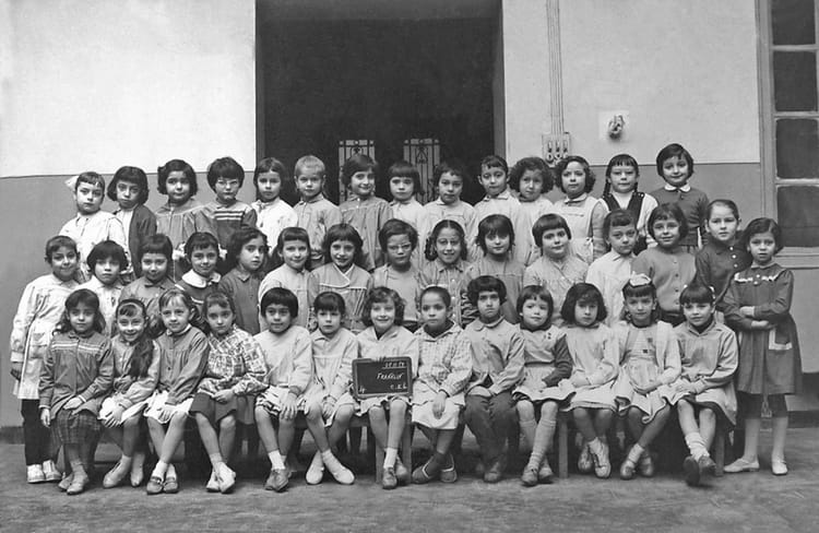 Naviguez en cliquant sur la photo. 1959 - CE1 - Franklin tres sage à l'époque. Sur la photo Annie DAY (GIACONIA) Frederique PIERI (LAURO) Nicole MARCHAL (WEINSCHEL) Signaler un abus