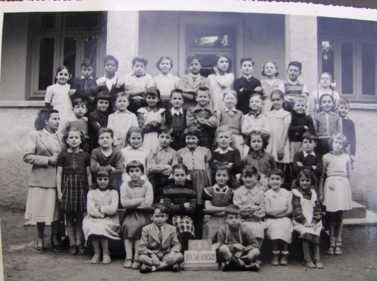 Hubert, je suis assise au 2° rang, jupe écossaise et pull rayé, 3° à partir de la gauche.