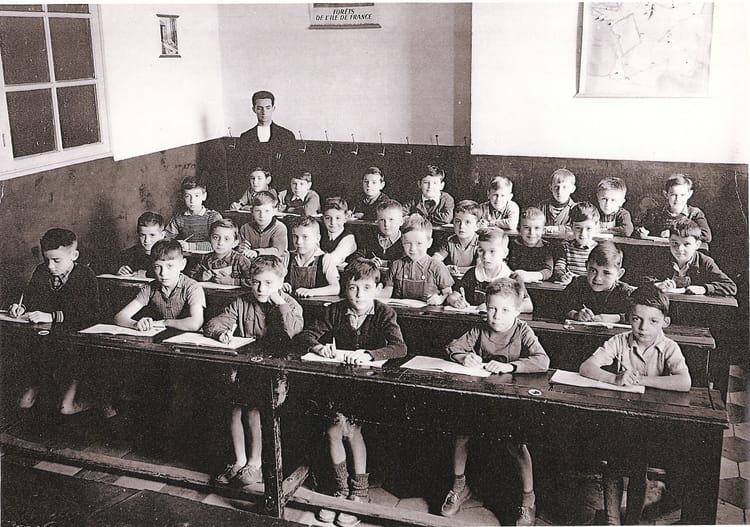 Jacques ESCALIER les bancs de ma classe au cm1 1962-63 étaient identiques et disposés de la même manière, et l'entrée aussi, peut-être est-ce la même salle!!! "