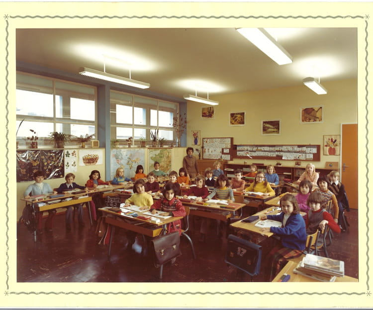 Naviguez en cliquant sur la photo. 1975 - CE2 - école st hubert Je suis tout devant avec le pull jaune à coté de Carmina. Sur la photo Annick KOLLATH (LOPINSKI) Signaler un abus
